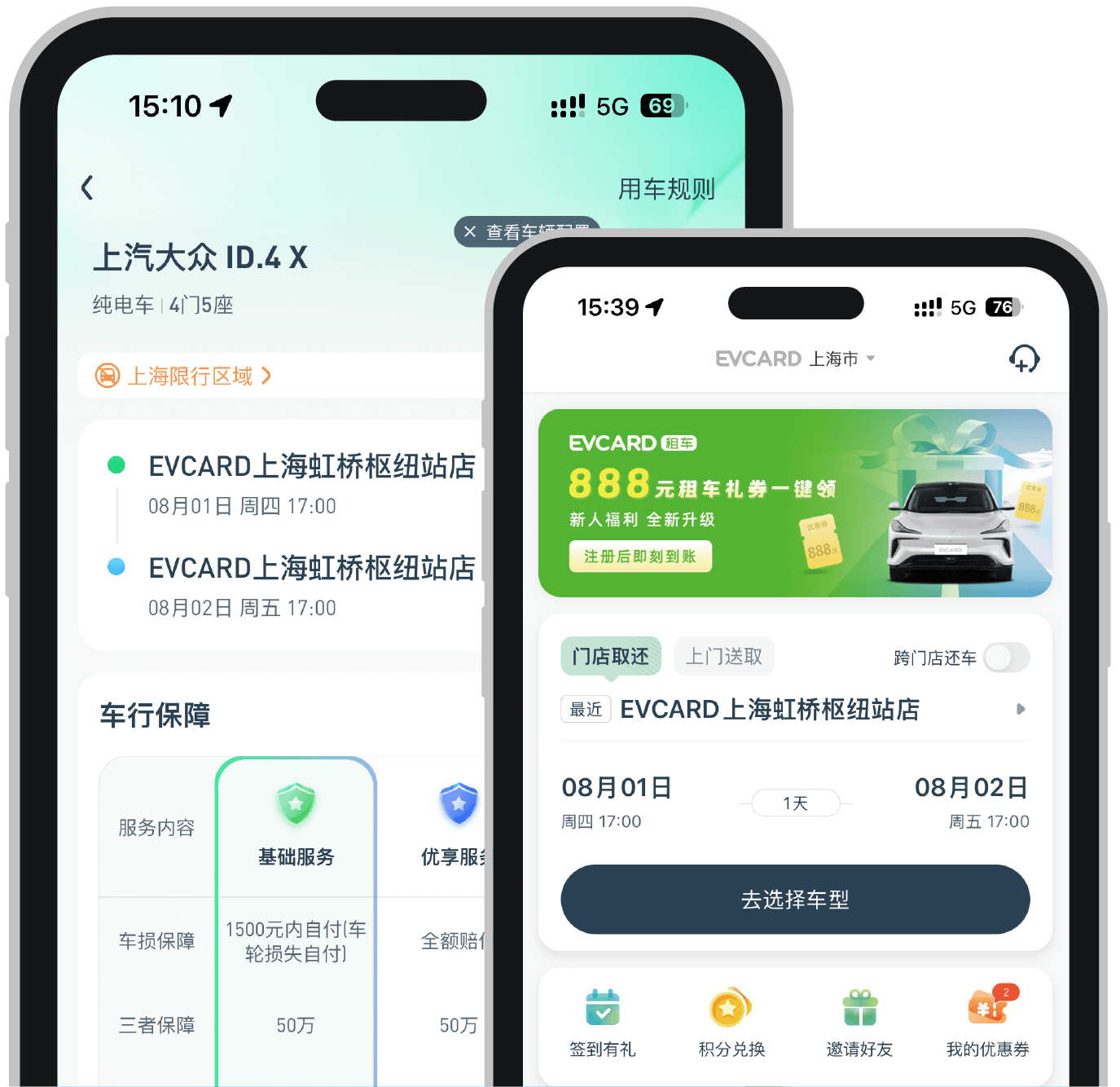 APP:可在手機應(yīng)用市場搜索下載“EVCARD租車”APP進(jìn)行預(yù)定。
